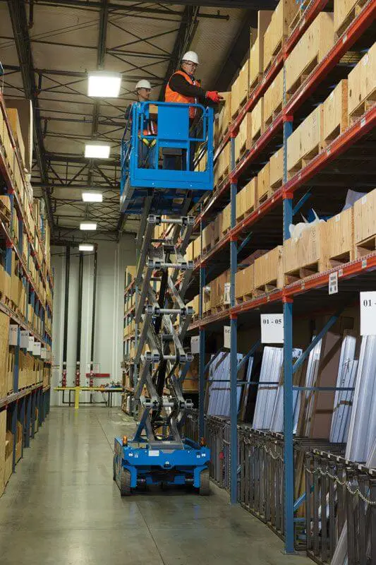 The GS 4046 from Genie is an electric slab scissor lift with a compact footprint. It has a working height of 45 feet and a lift capacity of 770 lbs – all in a narrow body that can fit through double doors. The GS-4046 is powered by AC electric drive motors, which deliver reliable and quiet performance without any emissions. Best of all, the Genie 4046 has a leading battery runtime and a universal charger for convenient re-charging.