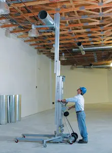 The SLC-24 MaterialLift is the ideal work companion for contractors looking to move equipment safely and securely. Those who install and repair sprinkler systems, air conditioning ducts and units, lighting or ceiling panels will find the Genie SLC-24 particularly useful. In addition, it can be used to fit insulation, electric cabling or even erect drywall. There are many uses for this type of lifting equipment, and as such, the SLC-24 by Genie is truly the ideal workmate.