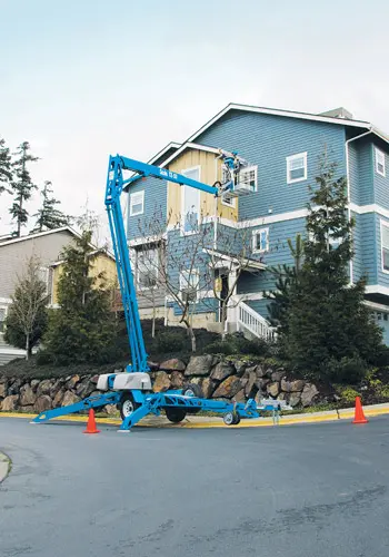 The Genie TZ-50 boom lift offers a wide range of benefits, making it a perfect unit for your job site. In addition to an industry-leading working envelope, it also includes trailer-mounted portability, an extension boom for up-and-over clearance, excellent horizontal reach, and a rotating self-leveling platform. CanLift offers the 50 ft towable boom lift for rent or sale. Contact us now to see if the Genie TZ-50 is right for your job.