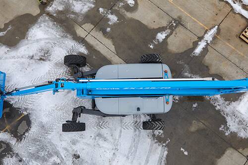 With the Genie Z-135/70, 4WD capability is standard, but you also have a choice of drive selection. With the flick of a switch, the operator can select front wheel drive, rear wheel drive, coordinated drive and crab drive (ideal choices for maneuvering in tight spaces), meaning it’s comfortable with what nearly any terrain can throw at it. The extra width foam-filled tires are also ideal for rugged environments and therefore getting around construction sites and industrialized areas with this Z Lift is a breeze.