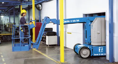 The Genie Z-30/20N can operate comfortably in a number of areas, including indoor storage facilities where space is at a premium, like maintenance areas, and other designated clean areas. It is ideal for those who need to pick stock, or maintain lighting, sprinkler systems, and air conditioning ducts plus carry out general high-level repairs. It’s also good for painters and decorators who need to access hard to reach places.
