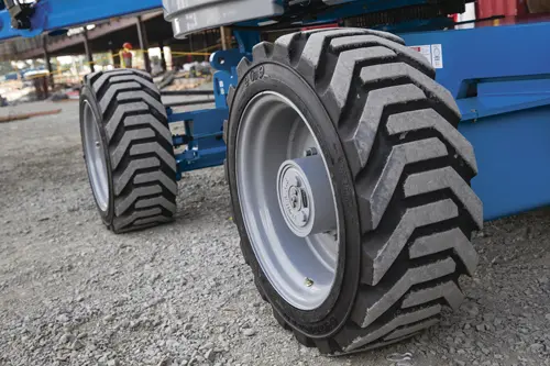 The Genie Z45 boom lift’s quick and maneuverable enhanced design helps get you from point A to point B quickly, easily and safely. The Bi-Energy system on the Genie Z45 combines virtually silent, emission-free and efficient operation of a 48V DC machine with the flexibility of a diesel generator powered machine to provide a boom lift that is perfect for many indoor and outdoor applications alike. The Genie Z45’s two-wheel drive system allows it to travel at 3 MPH (4.8 kph), and when stationary, The Genie Z45’s standard 6 foot (1.8 m) all-steel platform can lift over 500 pounds (227 kilograms). Giving it unsurpassed speed and lift capability it its class.