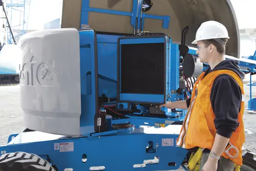 The ground controls of the Genie Z45 boom lift are located at eye level with easy to read labels including auxiliary power, key switch, emergency stop, hour meter and all of the boom functions. If you are looking to rent the Genie Z45 boom lift, or are considering purchasing it for your fleet, CanLift will be happy to provide you with any information on the Genie Z45 you may need. Our knowledgeable staff can help you with any and all questions you may have about the Genie Z45 or any of our other of our aerial lifts, like the Genie GS 4390 RT scissor lift. You can contact CanLift to see if the Genie Z45 is right for your jobsite.