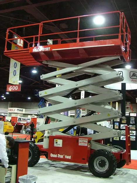 The MEC 4191RT scissor lift can lift up to 1,000 pounds to 47 feet in only 34 seconds. With 4-wheel drive, this scissor lift is easy to maneuver and remain stable on rough terrain.