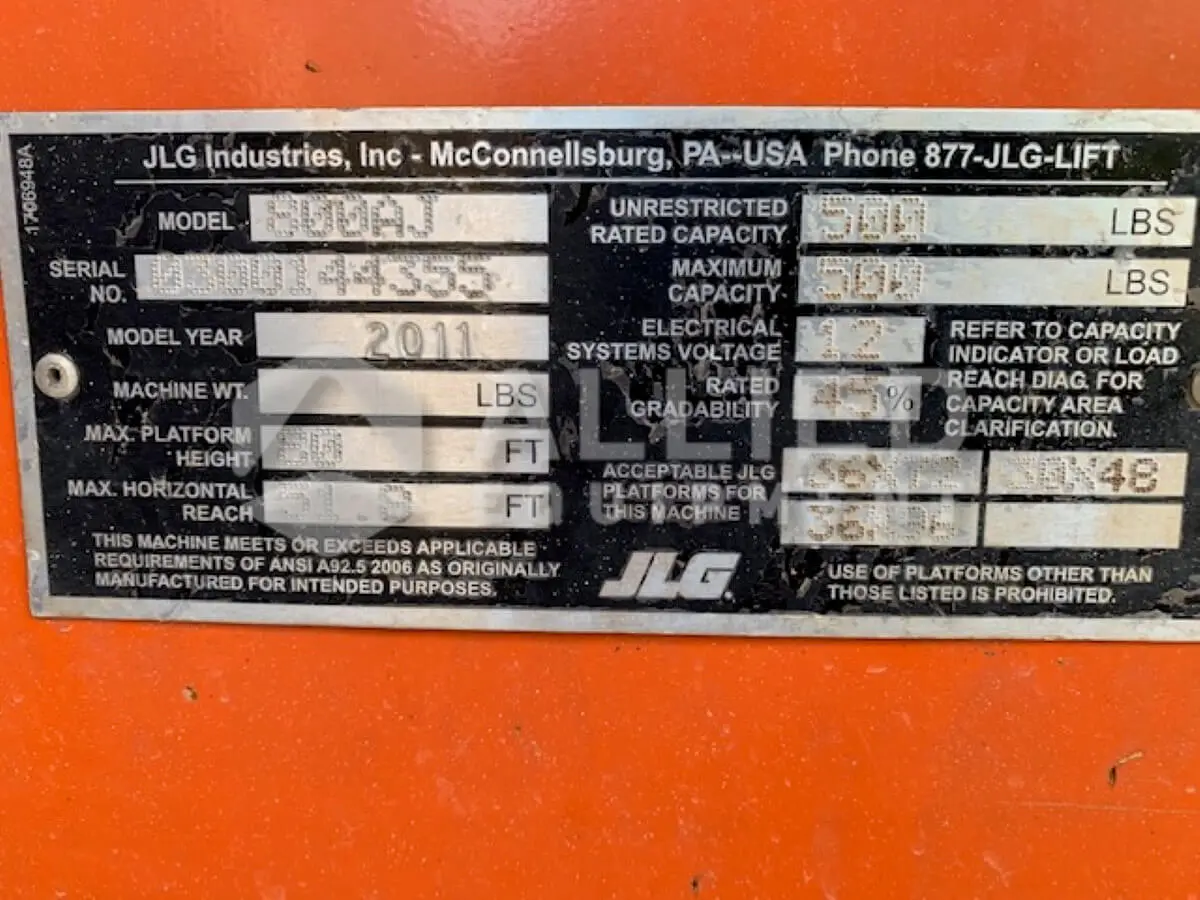 2011 JLG 800AJ (Serial # 300144355).