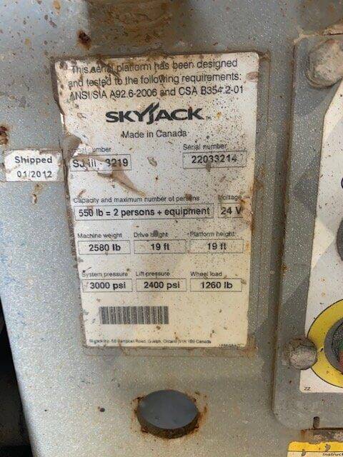 2012 Skyjack SJIII 3219 electric scissor lift.